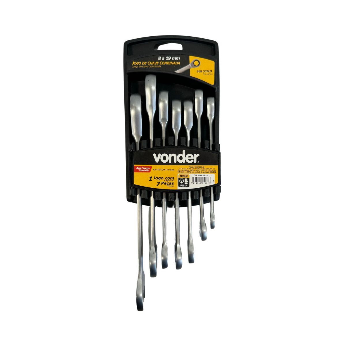 Jogo de Chaves Combinadas com Catraca 8 a 19mm com 7 peças VONDER